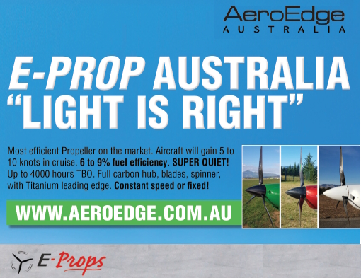 A full page advert in Sport Pilot Australia (August 2024) E-Props distributor : AEROEDGE