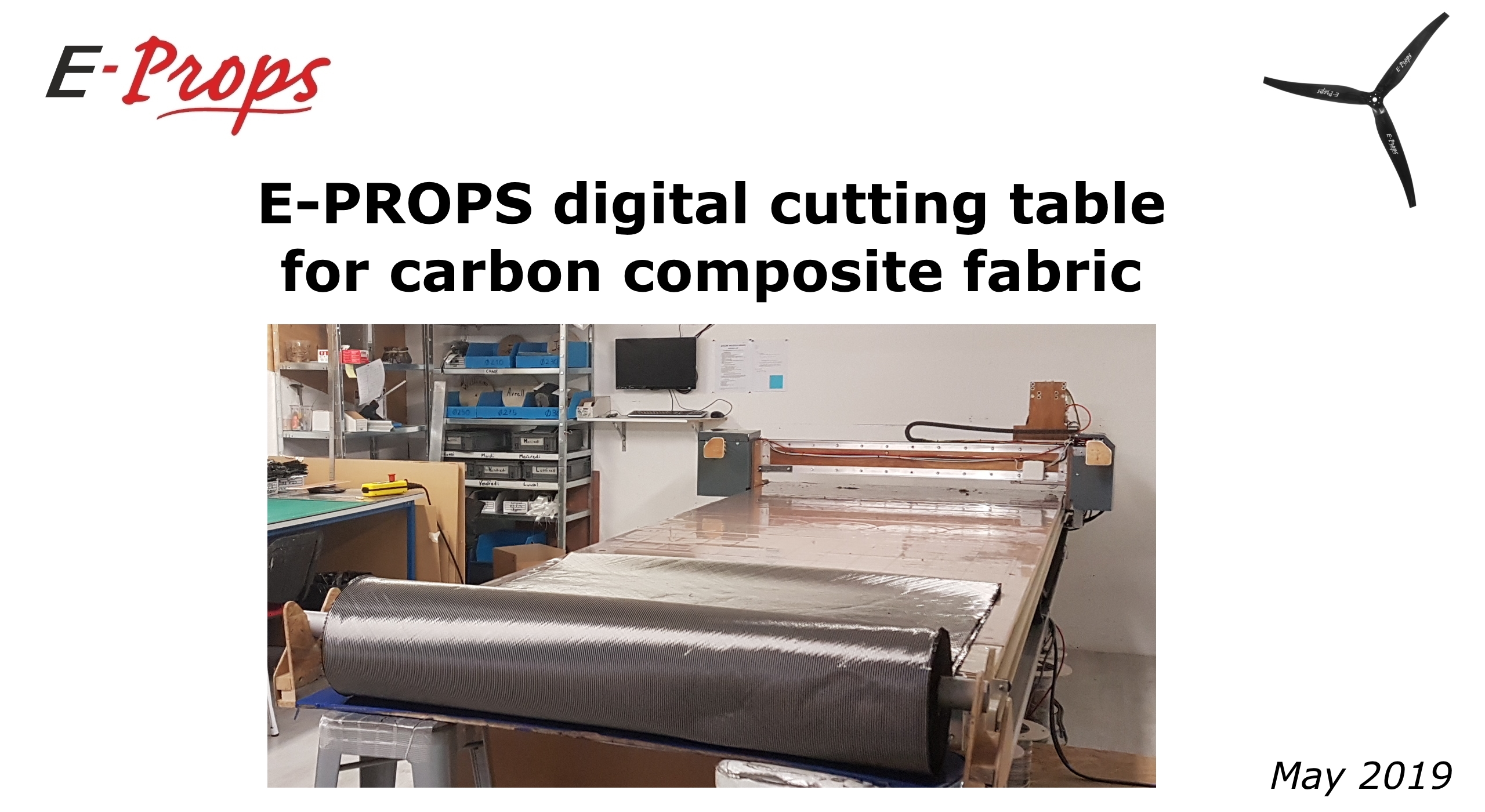 https://youtu.be/gFbh9S2lHwQ E-Props digital cutting table for carbon composite fabric (May 2019)