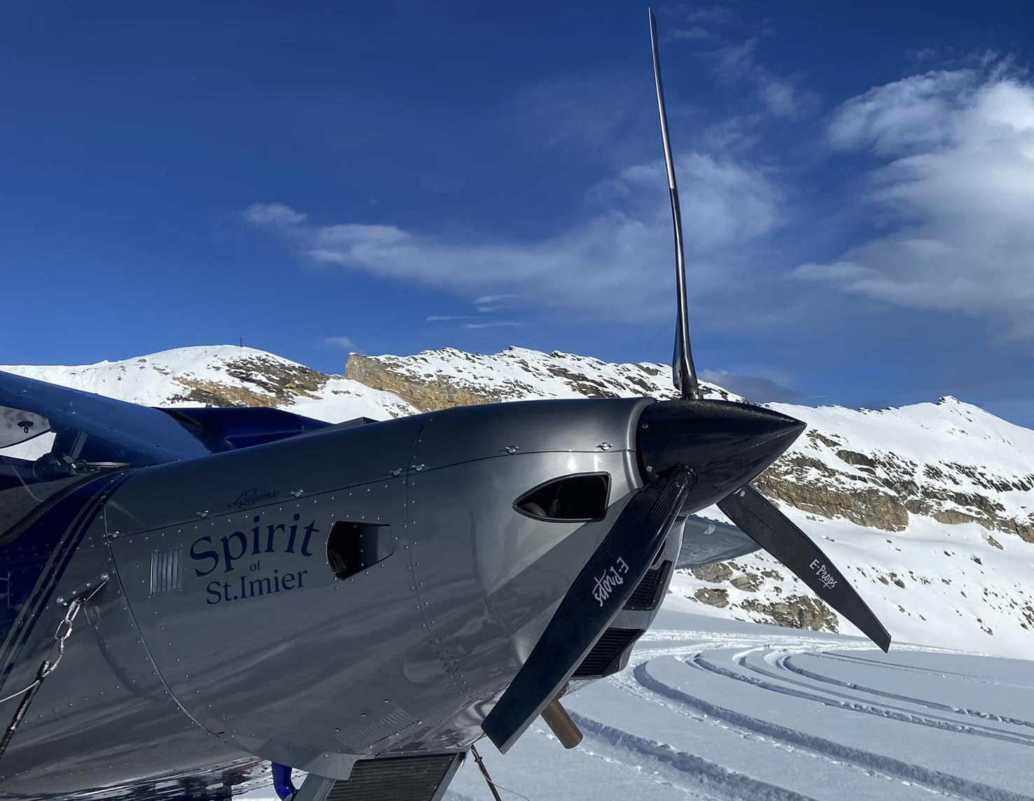 The first ICP VENTURA Rotax 915iS with E-Props Glorieuse (Constant Speed) on skis a great…